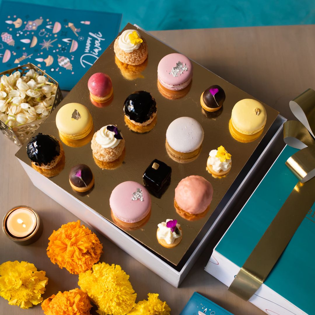 Be the showstopper guest at your relative or friend’s Diwali party by gifting this assorted box of petit fours by chef Freny Fernandes of Moner Bistro and Dessert Bar. Their version of Diwali mithai is this assortment of desserts – profiteroles, macarons, tarts and cake; in a variety of flavours.