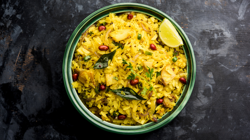 This lip-smacking breakfast dish is a classic Maharashtrian recipe and famous street food in Mumbai. It's made from flattened rice flakes that are sautéed with onions, potatoes, and a blend of spices. The dish is often garnished with fresh coriander and served with a side of lemon wedges.