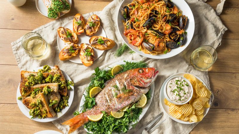 A traditional Christmas dinner in an Italian household consists of an extravagant seven-course menu, where seafood is the star. A Christmas dinner that is surely a seafood lover’s paradise, the traditional Christmas Eve dinner in Italy features a variety of seafood dishes, that includes almost all kinds of seafood, pasta dishes, meat and panettone for dessert. Although the preparation of this platter is quite a cumbersome task, you can always opt for simpler Christmas dishes featuring a grilled fish dish and seafood pasta.