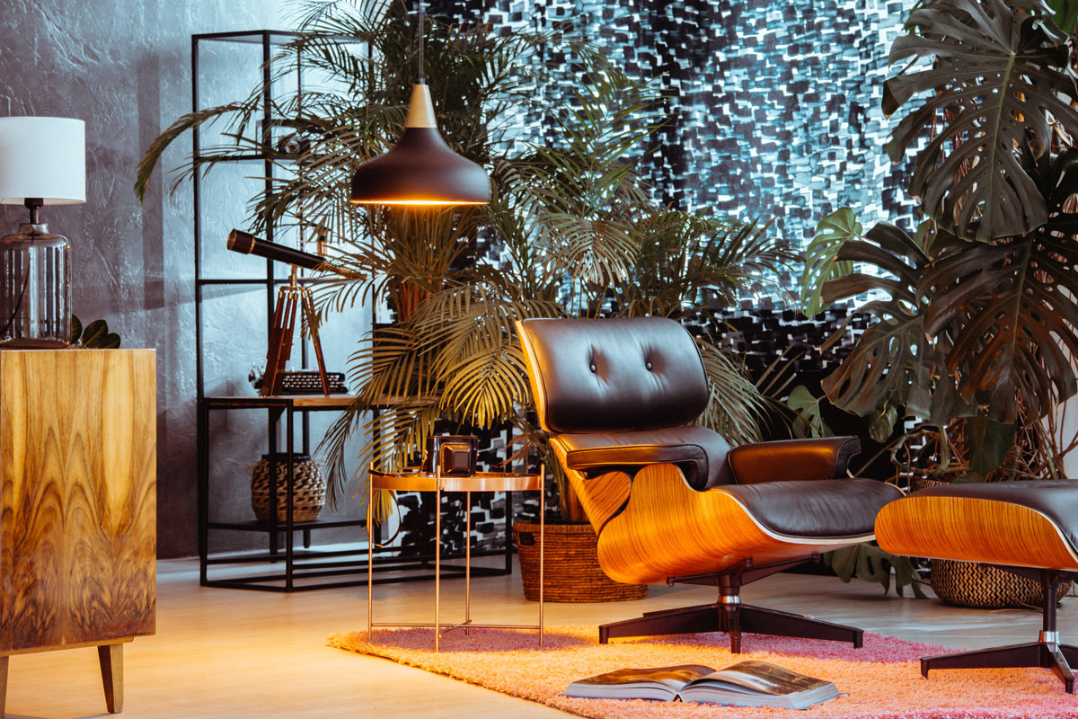 Go with metal cast iron chandeliers and wall lights to create that retro nostalgia. Additionally, nothing quite spells retro like a vintage table lamp. You could give it an interesting styling element by placing the lamp on a coffee table book or two. Avante garde lighting choices can be rich and nostalgic and give the space an almost theatrical feel.