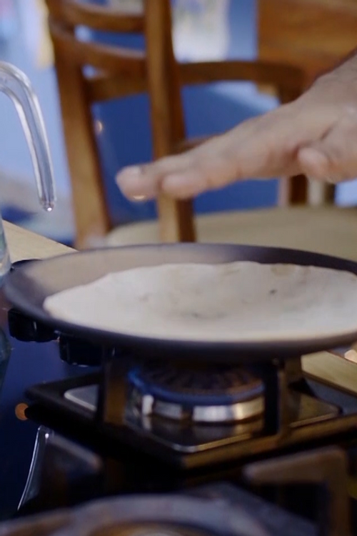 The stuffing can be made using boiled and mashed potatoes, onions, anardana, ginger, fresh coriander. The paratha is stuffed with mildly seasoned stuffing and cooked on a tawa. A blob of butter is placed on the hot paratha.