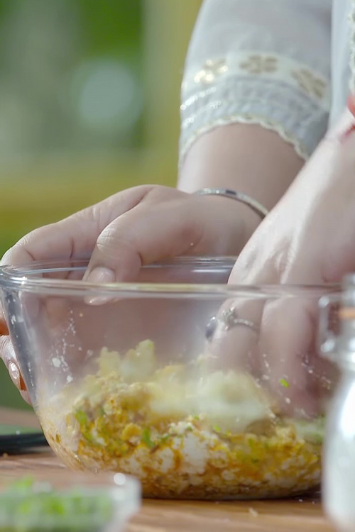 Tootak is a baked starter that is usually made during the festival of Eid. Traditionally, it is made with ground beef (Keema), but Chef Pankaj makes a vegetarian version here.