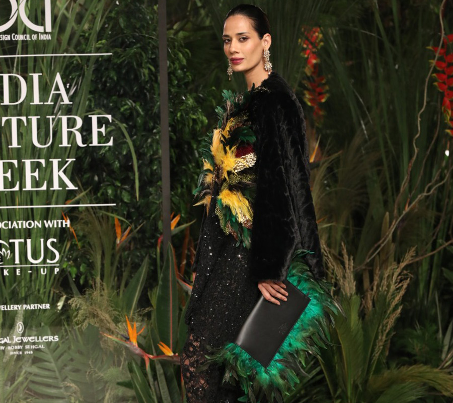 From an update on the classic Spanish floral hat to the much-loved straw bags—Bahl’s show focuses on how Indian fashion shows must throw equal emphasis on other accessories apart from jewellery. With their ruffled gowns and big floral hats, feather-laden messenger and clutch bags, poppy-coloured pumps, and feathered heels—they brought a fresh perspective on the aesthetic potential of classical accessories.