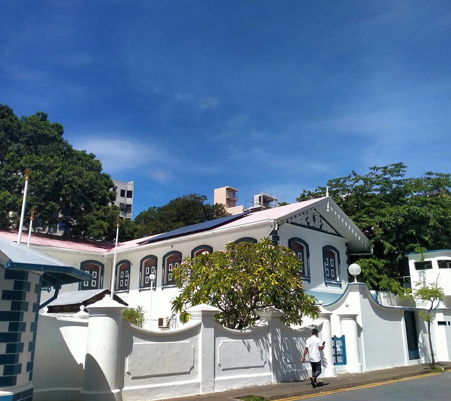 Back to the main Malé island, one of our first stops is the very unique Kalhu Vakaru Miskiiy or Travelling Mosque. Currently located next to the freshly refurbished Sultan Park in the very heart of Malé, this mosque is one that keeps changing its location every few decades. Made from both hirigaa (coral stone) and kalhu vakaru (lumber from the ebony tree) it can be fully dismantled very easily and set up just about anywhere. Ibrahim tells me that it has so far been located at the National Stadium and even on an island where a resort owner had purchased it after winning it in an auction and set it up there.